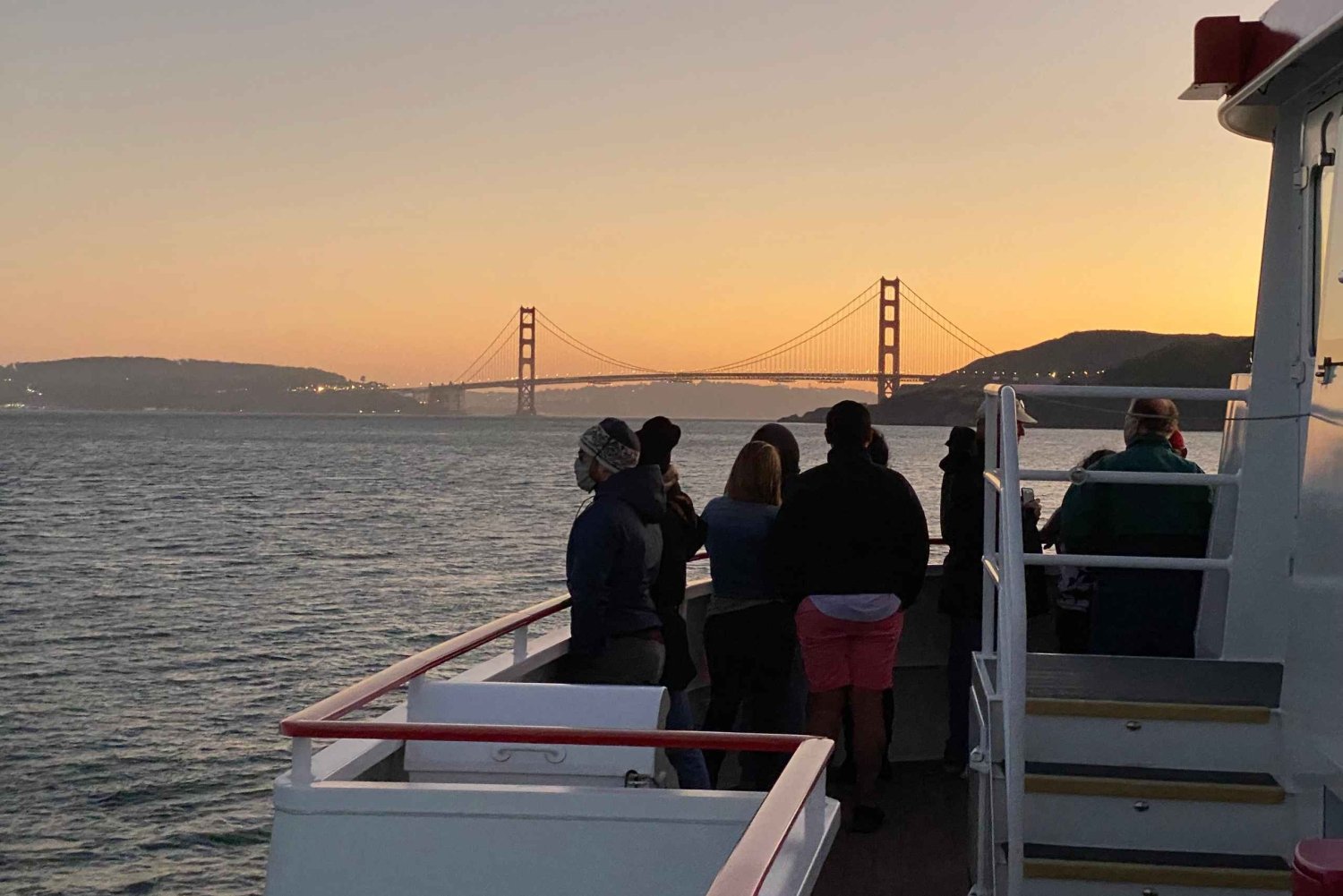 Our 2-hour San Francisco City Lights Cruise (known as the California Sunset Cruise during summer) is one of our most-loved experiences — and it’s easy to see why. As we glide past Alcatraz, Angel Island, and the Marin Headlands, you’ll watch the sky fade into deep blues and golds before we make our way beneath the Golden Gate Bridge. On the return, the city skyline sparkles to life — a picture-perfect view of San Francisco after dark. Dress warmly and make yourself at home on our outer decks for the best views. The City Lights Cruise is all about laid-back vibes, so whether you’re in jeans or dressed up for the evening, you’ll fit right in. Our full cash bar offers a great selection of beer, wine, and cocktails, along with light bites available for purchase. Want to bring your own food? Go for it — pick up your favorite meal from one of the many nearby restaurants at Fisherman’s Wharf and enjoy dinner with a view. Our full cash bar is stocked with a wide variety of beer, wine and cocktails, and our snack bar features light bites to purchase. And, if you want to bring your own food, you're more than welcome to grab a delicious meal from one of the many nearby restaurants in Fisherman's Wharf.