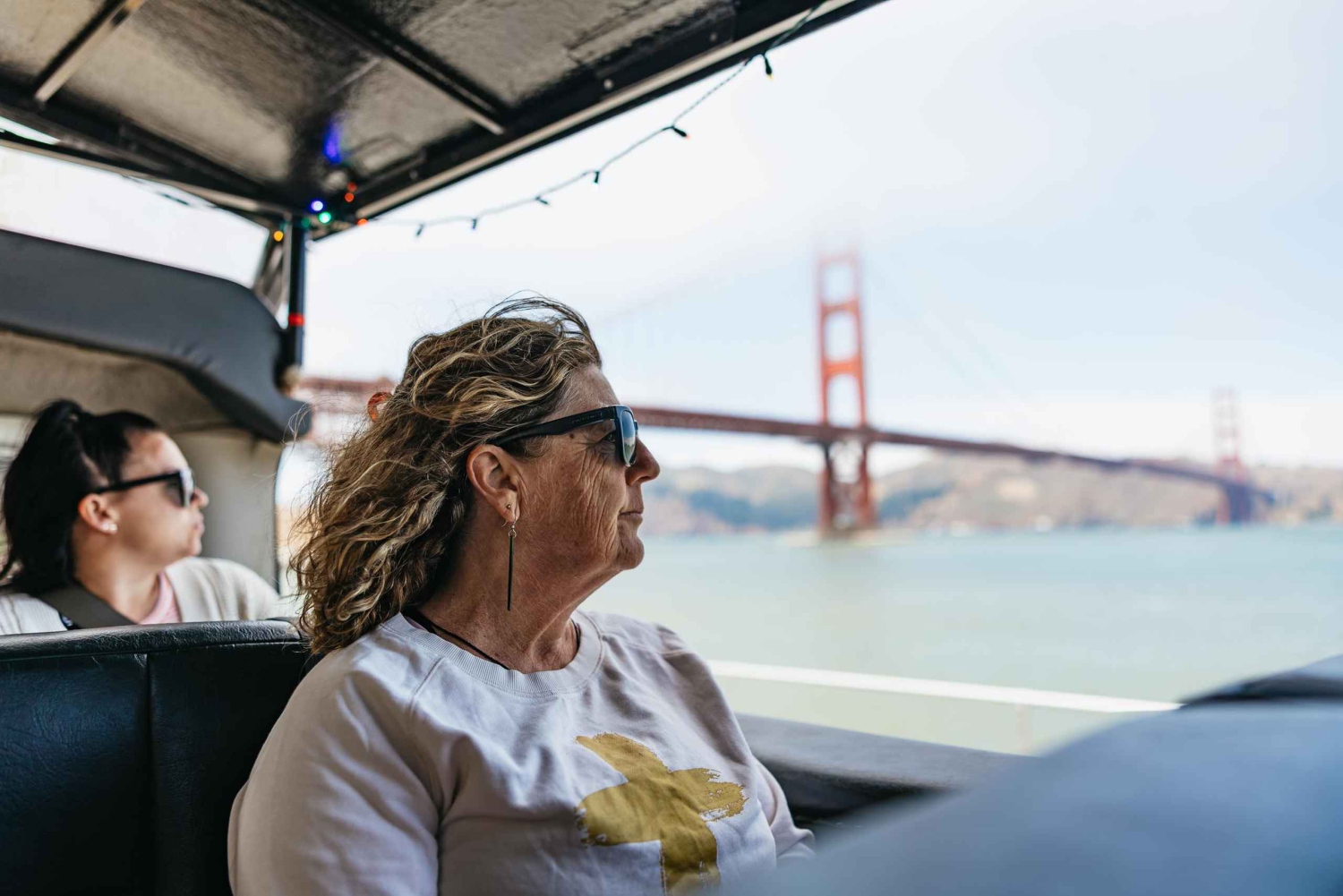 Descobre os destaques de São Francisco num tour guiado com paragens em marcos clássicos como a Ponte Golden Gate e Twin Peaks. Passeia por North Beach, Pacific Heights, Haight-Ashbury, Castro e Embarcadero, seguido de uma viagem de ferry até à Ilha de Alcatraz. Começa com um serviço de busca no hotel e parte para a exploração da cidade. Desfruta de comentários ao vivo do teu guia a bordo. Descobre locais como as ruelas de arte de rua, as escadas de mosaico em Sunset, a vibração descontraída de Presidio, a Câmara Municipal de Beaux-Arts ou as famosas 'Painted Ladies' na Alamo Square. Pára para tirar fotografias de marcos icónicos como a Ponte Golden Gate e Twin Peaks. Pára num mercado local onde podes comprar o almoço. Dirige-te para o desembarque do ferry de Alcatraz e usa os teus ingressos para viajares até 'the Rock' e explorares a ilha à tua vontade. Explora as antigas celas e aprende sobre a fascinante história da prisão e dos presos notáveis. Depois do teu tempo livre a explorar a ilha, embarca no ferry para regressares à cidade.Includes